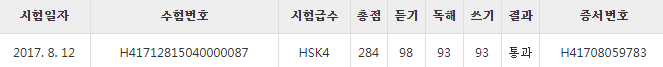 베이징중국어학원을 두달 다니고 HSK4급에 합격했어요~~~