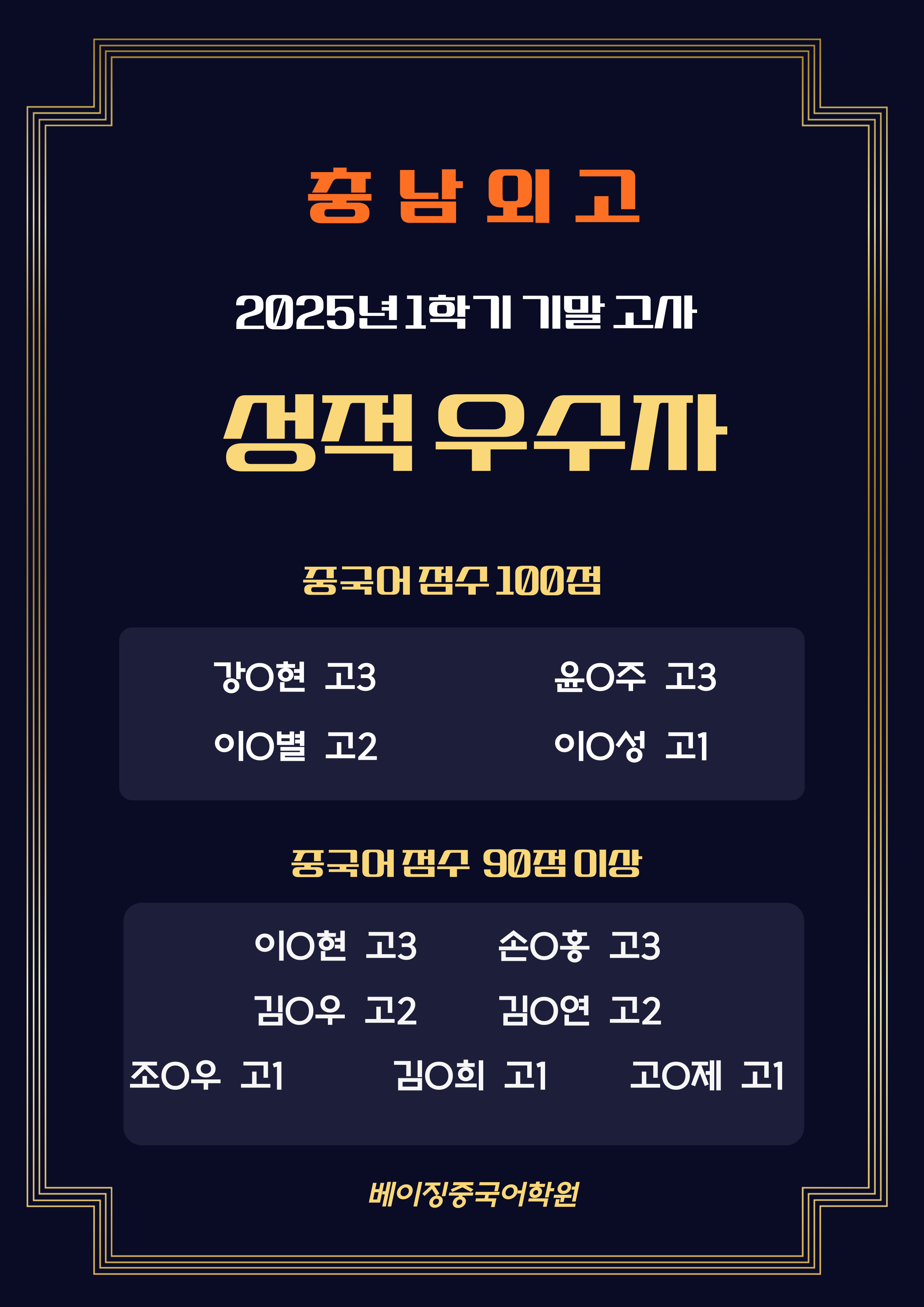 충남외고 성적우수자명단