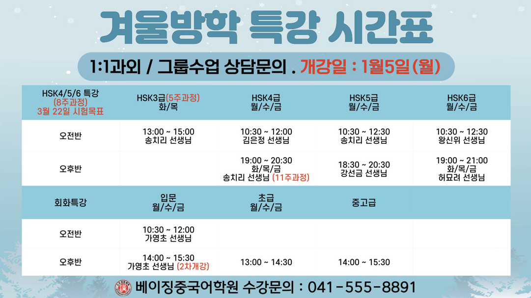 2026년 겨울방학특강 시간표 안내입니다.